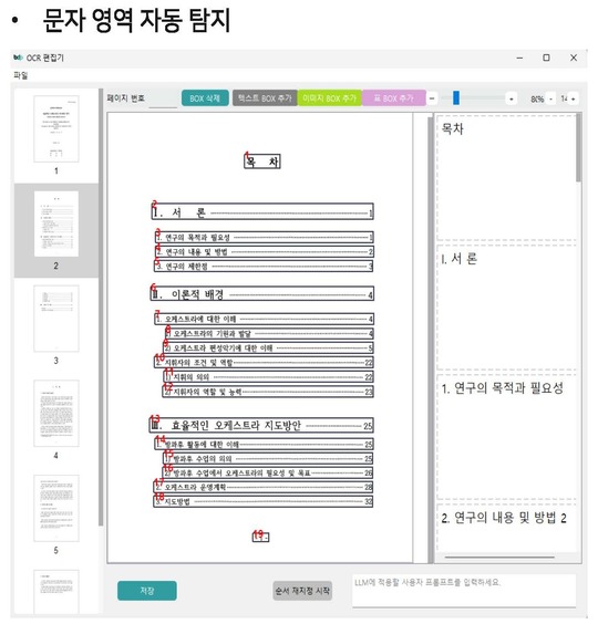 '문서 구조분석 및 객체 정보추출모델'과 결합하여 복잡한 문서의 레이아웃을 이해하고 구조적 정보를 보존하면서 주요 텍스트를 추출합니다.